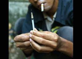 Jag ser nu direkt att det inte är någon vanlig person som har kommit in i vårt hem, utan en ganska nedgången och sliten person, som kanske är något eller några år, äldre än mig själv. Man ser även direkt att mannen är en påtänd knarkare. Nu invaderas jag plötsligt av diverse jobbiga tankar… Usch!