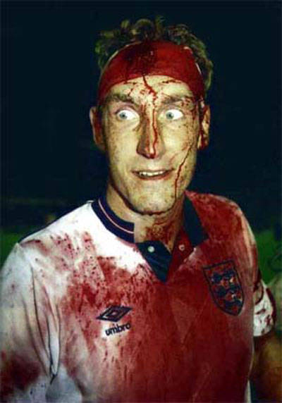 Men nu började jag faktiskt påminna om en slaktad gris, eller möjligtvis om engelsmannen Terry Butcher och som han såg ut då han spelade helt nedblodad i en fotbollslandskamp mot Sverige 1989.