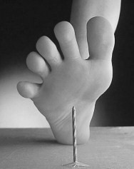 Jag hade dock tur i oturen, för när den 15-20 mm långa spikeggen trängde in i foten, missade den alla senor, muskelfästen och skelettdelar. Spiken hade endast trängt in i köttet.