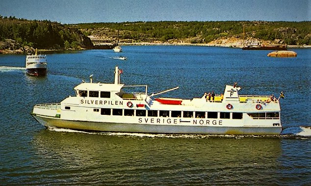 I Strömstad gick vi på färjan, ”Silverpilen”, mot Fredrikstad i Norge, en resa som tog någon timme i anspråk. Kommer inte ihåg vad vi gjorde på färjan, men kanske tog vi en öl eller två. Har även för mig att vi hade med oss någon form av flytande matsäck. Det är lätt att drabbas av vätskebrist annars…