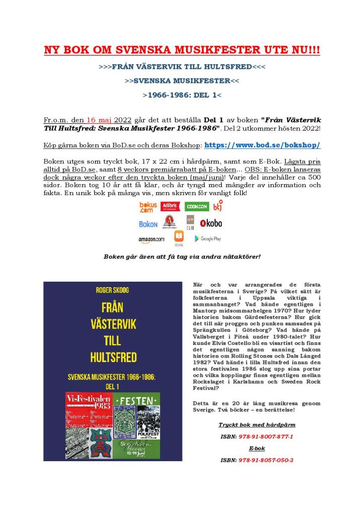 En reaktion till “”Från Västervik Till Hultsfred: Svenska Musikfester 1966-1986 Del 1”- Boken äntligen klar efter 10 år!”