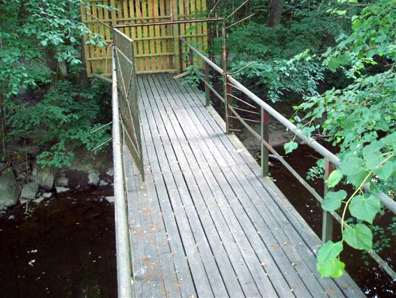 Vet inte hur jag gick tillväga, men efter ett tag kunde jag klättra fram på räcket på brons utsida och sedan, på något vis forma kroppen till ett stort C, och därefter använda spjuten som både handtag och fotstöd. Visst var jag nära att falla i Bäveån vid ett flertal tillfällen och sannolikheten för att misslyckas med att ta sig förbi de spetsiga hindren utan hjälpmedel låg väl runt 90-100%. Konstruktionen var ju för satan byggd för att hindra folk att ta sig över bron, men det struntade jag naturligtvis i och klättrade förbi spjuten i alla fall.